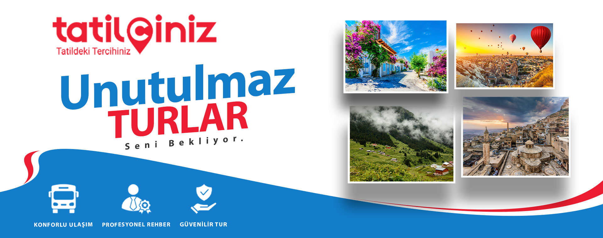 Sizler de otobüs ve uçaklı turlarımız ile konforlu bir şekilde yurt içi turlarımıza katılabilirsiniz. İstanbul çıkışlı haftasonu turlarımızdan veya hafta içi turlarımız sayesinde bir çok müşterimize unutulmayacak bir tatil yaşatıyoruz.